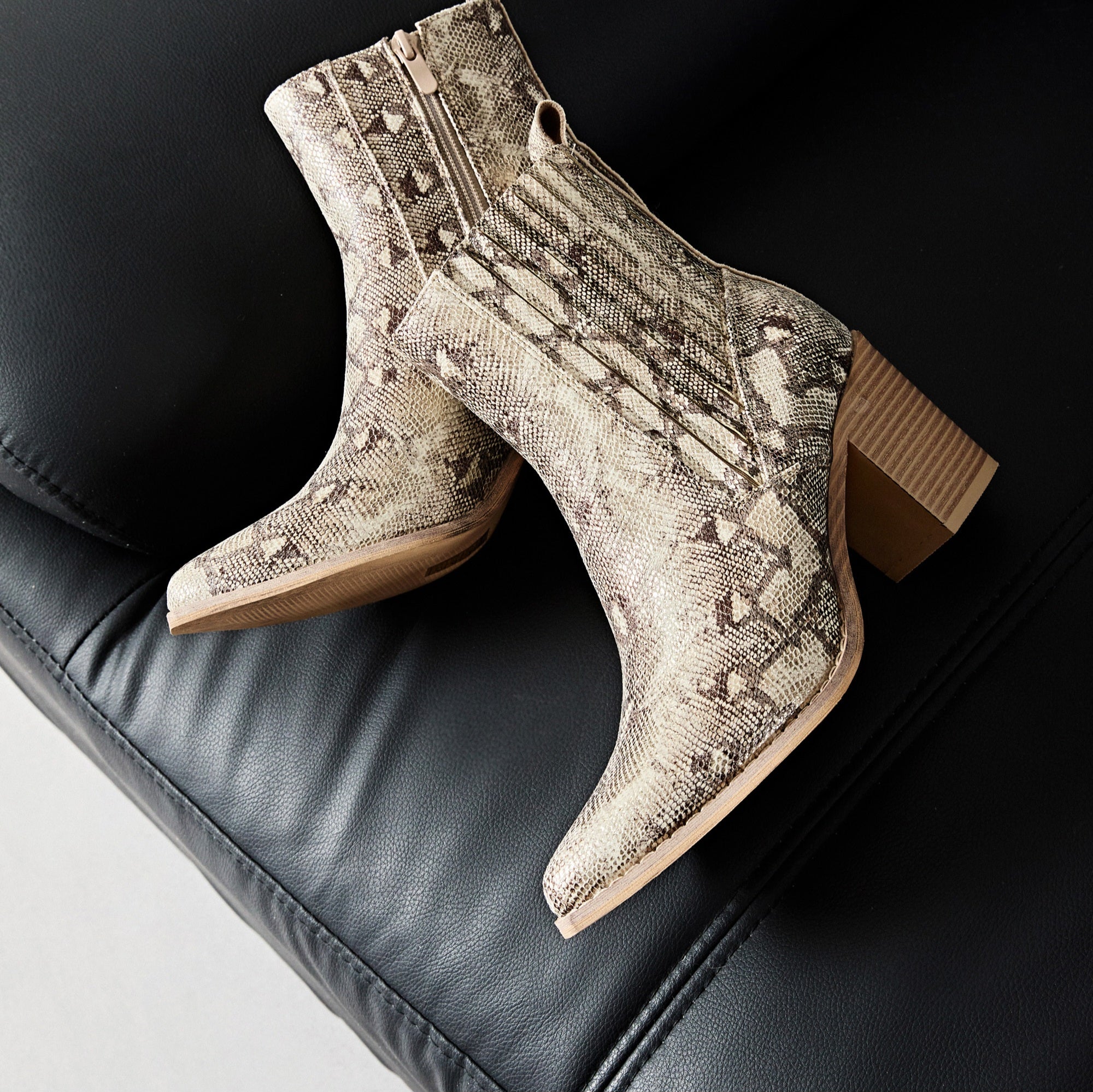 Bottines Écrues à Talon Bloc et Boucle Dorée